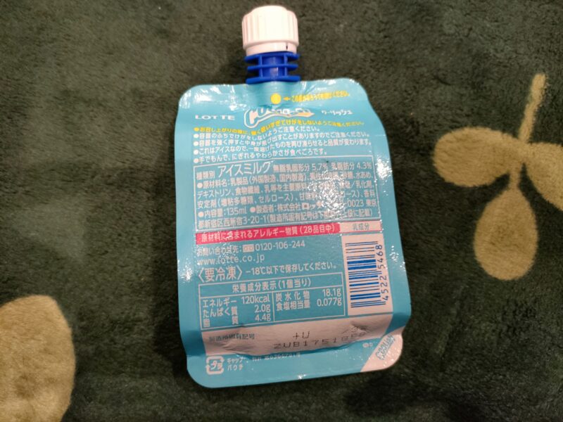 そして気になるカロリーは、容量135mlに対して120kcalです。